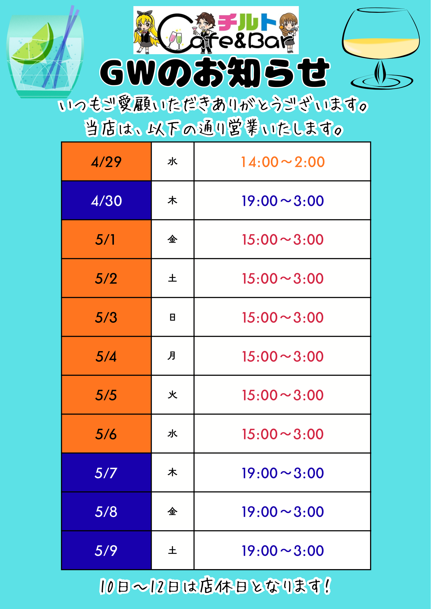 GWの営業時間のお知らせ